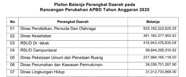 Tidak hanya itu, menurutnya juga terjadi penumpukan anggaran di dinas lain. “ Yang lebih parah lagi, ada penumpukan anggaran dikisaran 30 % APBD di Dinas Pendidikan dan penumpukan terbanyak adalah untuk Belanja Pegawai, dimana penggunakan anggaran di Dinas Pendidikan mencapai 933 milyar lebih pada APBDP 2025”, terang pria berambut putih ini.