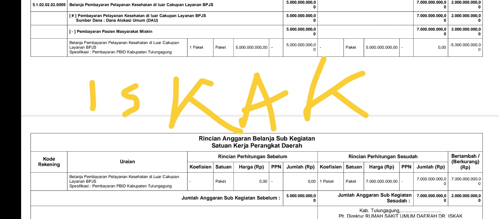 Pada RSUD Iskak ada 7 milyar dg pemakaian yg jelas, yakni pembayaran pelayanan kesehatan diluar cakupan BPJS ato dg kata lain untk masyarakat miskin yg belum tercover BPJS..