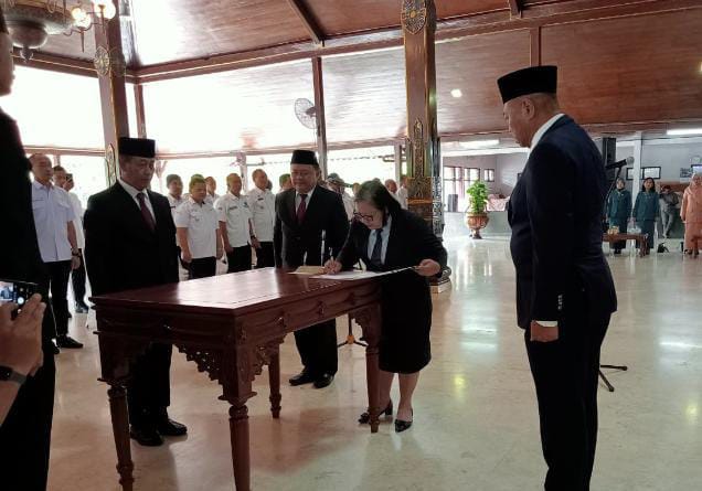 TULUNGAGUNG – Pemandangan tak biasa baru-baru ini terjadi di lingkup Pemerintahan Kabupaten Tulungagung. Pelantikan Penjabat (Pj) Sekretaris Daerah (Sekda) digelar secara resmi dan cukup meriah berlangsung di Pendopo Kongas Arum Kusumaningbongso, pada Rabu, (7/1/2026)